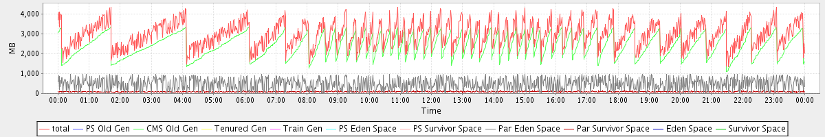 avg(total) = 2966.40 avg(PS Old Gen) = 0.00 avg(CMS Old Gen) = 2397.02 avg(Tenured Gen) = 0.00 avg(Train Gen) = 0.00 avg(PS Eden Space) = 0.00 avg(PS Survivor Space) = 0.00 avg(Par Eden Space) = 479.45 avg(Par Survivor Space) = 89.93 avg(Eden Space) = 0.00 avg(Survivor Space) = 0.00