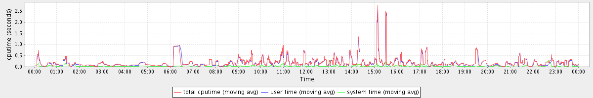 avg(total cputime) = 0.12 avg(user time) = 0.11 avg(system time) = 0.01