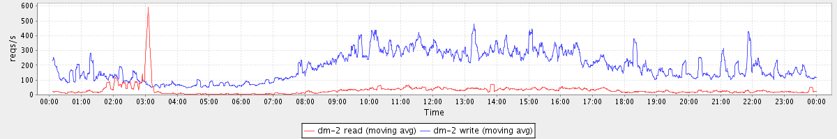 avg(dm-2 read) = 416.76 avg(dm-2 write) = 1104.29