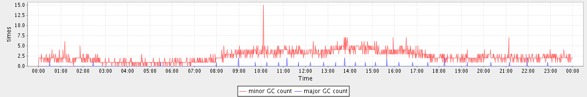 avg(minor GC count) = 2.43 avg(major GC count) = 0.02