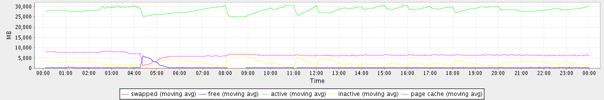avg(swapped) = 0.25 avg(free) = 343.91 avg(active) = 28474.04 avg(inactive) = 2565.38 avg(page cache) = 6413.89