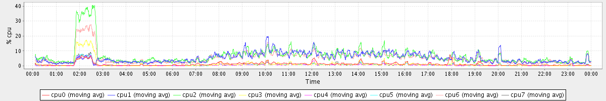 avg(cpu0) = 1.07 avg(cpu1) = 0.26 avg(cpu2) = 0.29 avg(cpu3) = 0.20 avg(cpu4) = 0.14 avg(cpu5) = 0.17 avg(cpu6) = 0.20 avg(cpu7) = 0.17