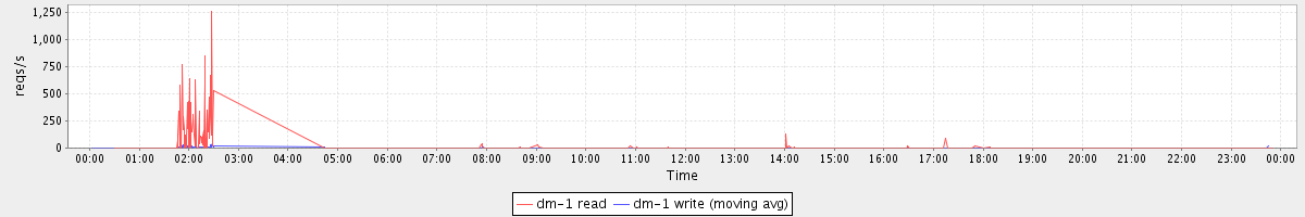 avg(dm-1 read) = 6.04 avg(dm-1 write) = 0.37