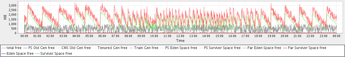 avg(total free) = 1735.14 avg(PS Old Gen free) = 0.00 avg(CMS Old Gen free) = 1225.77 avg(Tenured Gen free) = 0.00 avg(Train Gen free) = 0.00 avg(PS Eden Space free) = 0.00 avg(PS Survivor Space free) = 0.00 avg(Par Eden Space free) = 478.00 avg(Par Survivor Space free) = 31.38 avg(Eden Space free) = 0.00 avg(Survivor Space free) = 0.00