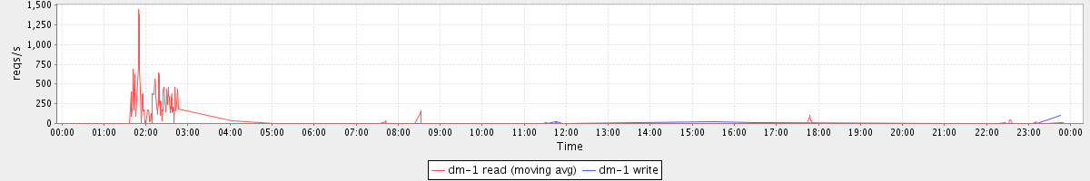 avg(dm-1 read) = 375.20 avg(dm-1 write) = 0.38