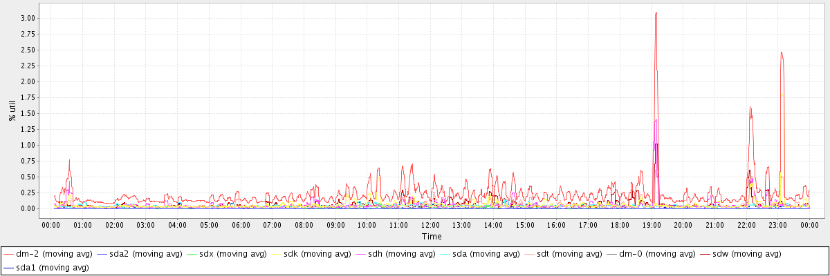 avg(dm-2) = 0.24 avg(sda2) = 0.00 avg(sdx) = 0.00 avg(sdk) = 0.06 avg(sdh) = 0.06 avg(sda) = 0.04 avg(sdt) = 0.06 avg(dm-0) = 0.00 avg(sdw) = 0.06 avg(sda1) = 0.04
