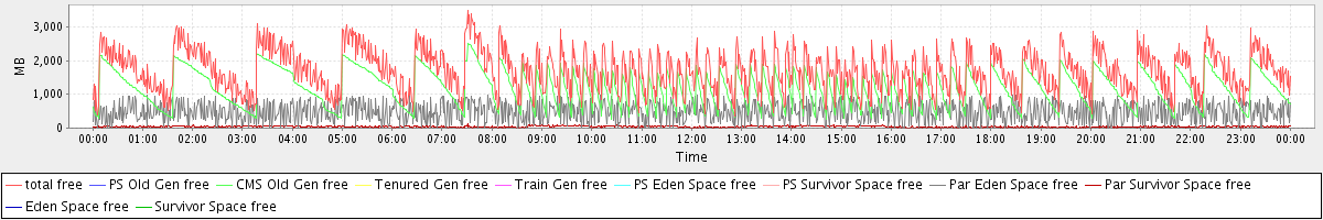 avg(total free) = 1702.82 avg(PS Old Gen free) = 0.00 avg(CMS Old Gen free) = 1173.36 avg(Tenured Gen free) = 0.00 avg(Train Gen free) = 0.00 avg(PS Eden Space free) = 0.00 avg(PS Survivor Space free) = 0.00 avg(Par Eden Space free) = 486.86 avg(Par Survivor Space free) = 42.60 avg(Eden Space free) = 0.00 avg(Survivor Space free) = 0.00