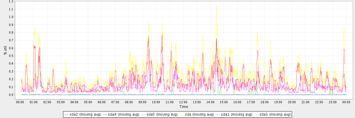 avg(sda2) = 0.16 avg(sda4) = 0.00 avg(sda5) = 0.01 avg(sda) = 0.27 avg(sda1) = 0.12 avg(sda3) = 0.00
