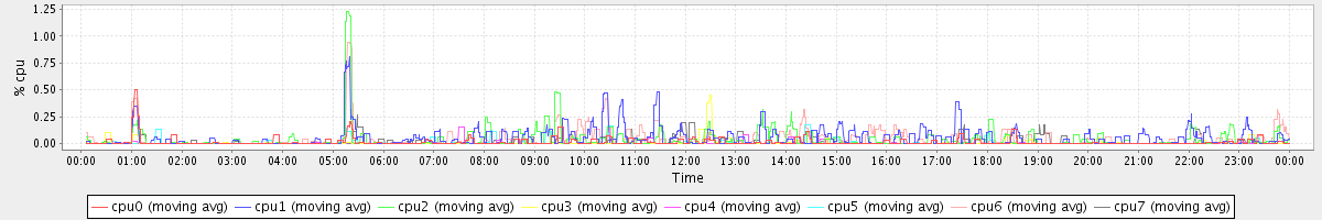 avg(cpu0) = 0.01 avg(cpu1) = 0.05 avg(cpu2) = 0.04 avg(cpu3) = 0.01 avg(cpu4) = 0.00 avg(cpu5) = 0.01 avg(cpu6) = 0.04 avg(cpu7) = 0.01