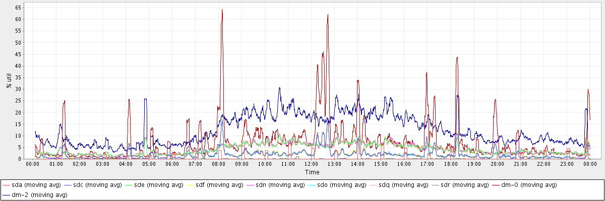 avg(sda) = 0.53 avg(sdc) = 1.90 avg(sde) = 4.22 avg(sdf) = 1.92 avg(sdn) = 4.21 avg(sdo) = 1.90 avg(sdq) = 4.20 avg(sdr) = 1.90 avg(dm-0) = 7.38 avg(dm-2) = 12.42