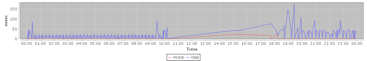 avg(mysql) = 0.37 avg(ldap) = 5.13