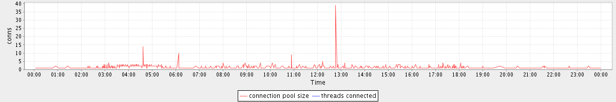 avg(connection pool size) = 0.73 avg(threads connected) = 0.00