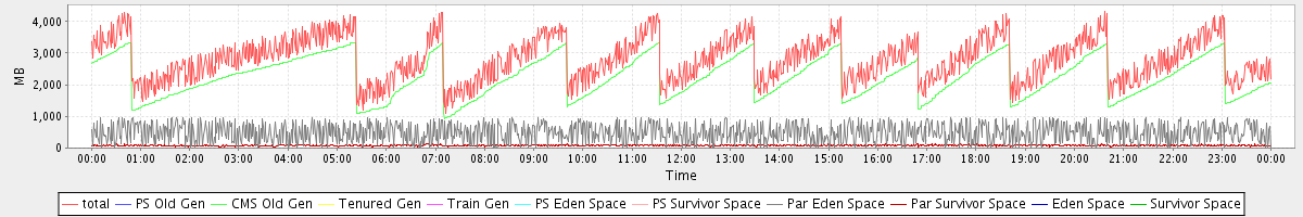 avg(total) = 2814.16 avg(PS Old Gen) = 0.00 avg(CMS Old Gen) = 2245.80 avg(Tenured Gen) = 0.00 avg(Train Gen) = 0.00 avg(PS Eden Space) = 0.00 avg(PS Survivor Space) = 0.00 avg(Par Eden Space) = 486.31 avg(Par Survivor Space) = 82.05 avg(Eden Space) = 0.00 avg(Survivor Space) = 0.00