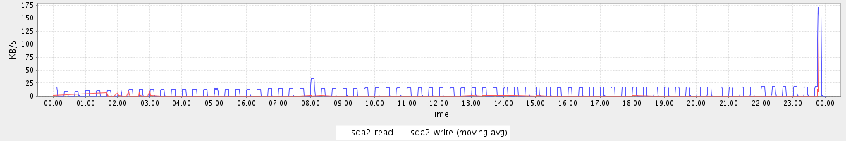 avg(sda2 read) = 0.08 avg(sda2 write) = 5.66