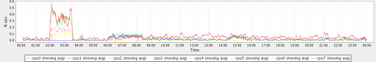 avg(cpu0) = 0.07 avg(cpu1) = 0.02 avg(cpu2) = 0.04 avg(cpu3) = 0.01 avg(cpu4) = 0.00 avg(cpu5) = 0.00 avg(cpu6) = 0.02 avg(cpu7) = 0.00