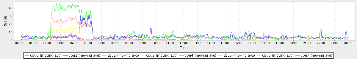 avg(cpu0) = 0.10 avg(cpu1) = 0.01 avg(cpu2) = 0.04 avg(cpu3) = 0.01 avg(cpu4) = 0.00 avg(cpu5) = 0.00 avg(cpu6) = 0.02 avg(cpu7) = 0.00