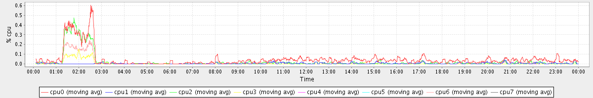 avg(cpu0) = 0.05 avg(cpu1) = 0.01 avg(cpu2) = 0.02 avg(cpu3) = 0.00 avg(cpu4) = 0.00 avg(cpu5) = 0.00 avg(cpu6) = 0.01 avg(cpu7) = 0.00