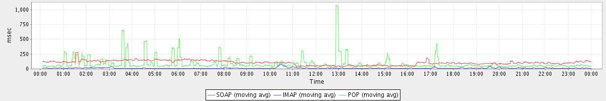 Host zm01.stanford.edu: Mailboxd: Response Time by Client Protocol