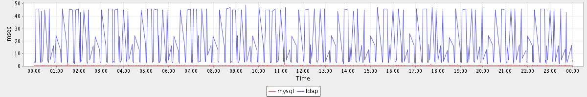 avg(mysql) = 0.34 avg(ldap) = 4.61