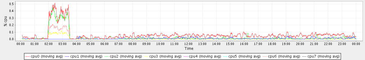 avg(cpu0) = 0.07 avg(cpu1) = 0.01 avg(cpu2) = 0.03 avg(cpu3) = 0.01 avg(cpu4) = 0.00 avg(cpu5) = 0.00 avg(cpu6) = 0.01 avg(cpu7) = 0.00