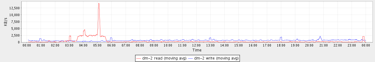 avg(dm-1 read) = 14.83 avg(dm-1 write) = 7.01