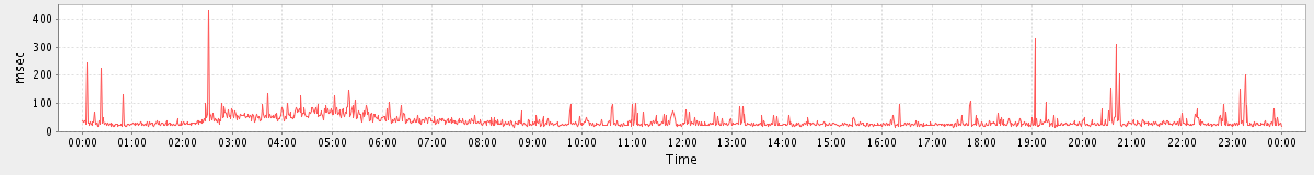 avg(SendMsgRequest) = 246.36 avg(AddAccountAliasRequest) = 258.67 avg(BackupQueryRequest) = 422.00 avg(GetFreeBusyRequest) = 592.04 avg(SendInviteReplyRequest) = 232.40 avg(AutoCompleteRequest) = 489.74 avg(SetAppointmentRequest) = 228.03 avg(FolderActionRequest.empty) = 4390.16 avg(BackupRequest) = 5386.50 avg(GetQuotaUsageRequest) = 2292.00