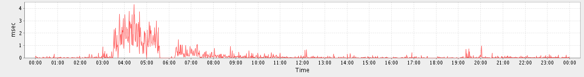 max(GetMsgRequest) = 65.00 max(MsgActionRequest.move) = 52.00 max(SearchConvRequest) = 42.00 max(GetFolderRequest) = 113.00 max(SearchRequest) = 52.00 max(MsgActionRequest.delete) = 297.00 max(NoOpRequest) = 83.00 max(SyncRequest) = 252.00 max(MsgActionRequest.update) = 52.00 max(GetAppointmentRequest) = 965.00