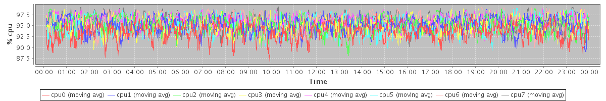 avg(cpu0) = 93.69 avg(cpu1) = 95.20 avg(cpu2) = 95.16 avg(cpu3) = 95.10 avg(cpu4) = 96.13 avg(cpu5) = 95.14 avg(cpu6) = 95.62 avg(cpu7) = 95.66