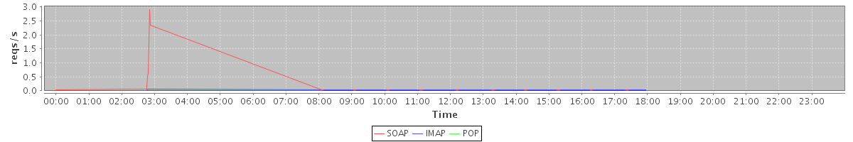 Host zm02-loadtest.stanford.edu: Mailboxd: Request Rate by Client Protocol