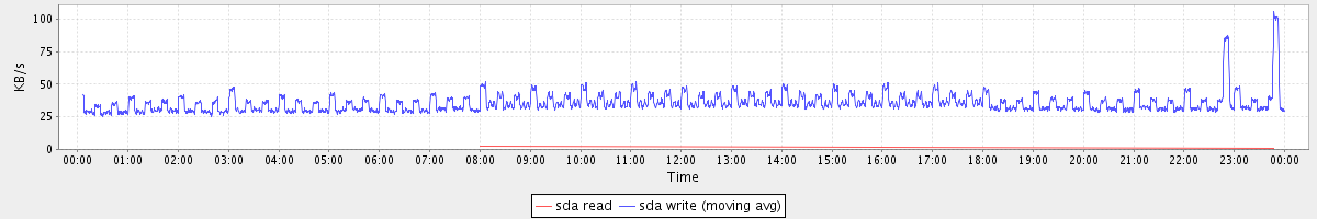 avg(sda read) = 0.00 avg(sda write) = 35.75