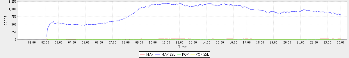 avg(IMAP) = 19.18 avg(IMAP SSL) = 888.37 avg(POP) = 0.01 avg(POP SSL) = 10.33