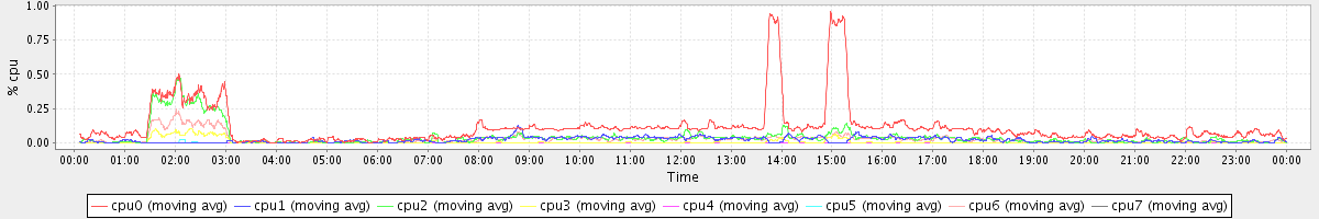 avg(cpu0) = 1.71 avg(cpu1) = 0.24 avg(cpu2) = 0.27 avg(cpu3) = 0.18 avg(cpu4) = 0.14 avg(cpu5) = 0.16 avg(cpu6) = 0.19 avg(cpu7) = 0.15