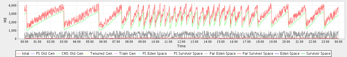 avg(total) = 2854.25 avg(PS Old Gen) = 0.00 avg(CMS Old Gen) = 2286.65 avg(Tenured Gen) = 0.00 avg(Train Gen) = 0.00 avg(PS Eden Space) = 0.00 avg(PS Survivor Space) = 0.00 avg(Par Eden Space) = 481.51 avg(Par Survivor Space) = 86.09 avg(Eden Space) = 0.00 avg(Survivor Space) = 0.00