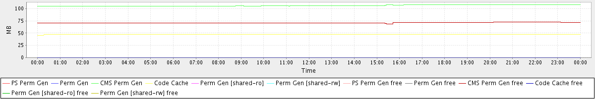 avg(PS Perm Gen) = 0.00 avg(Perm Gen) = 0.00 avg(CMS Perm Gen) = 106.40 avg(Code Cache) = 47.44 avg(Perm Gen [shared-ro]) = 0.00 avg(Perm Gen [shared-rw]) = 0.00 avg(PS Perm Gen free) = 0.00 avg(Perm Gen free) = 0.00 avg(CMS Perm Gen free) = 70.96 avg(Code Cache free) = 0.32 avg(Perm Gen [shared-ro] free) = 0.00 avg(Perm Gen [shared-rw] free) = 0.00