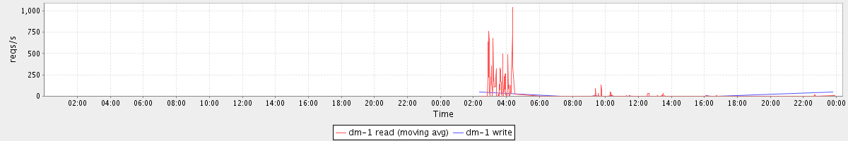 avg(dm-1 read) = 7.38 avg(dm-1 write) = 0.06