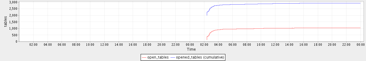 avg(open_tables) = 994.60 avg(opened_tables (cumulative)) = 2868.85