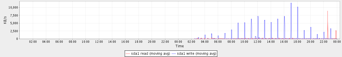 avg(sda1 read) = 28.09 avg(sda1 write) = 476.52