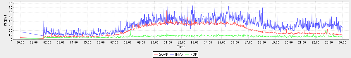 Host zm06.stanford.edu: Mailboxd: Request Rate by Client Protocol