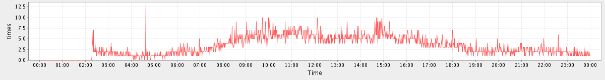 max(MsgActionRequest.move) = 404.00 max(SearchRequest) = 500.00 max(MsgActionRequest.delete) = 1743.00 max(NoOpRequest) = 304.00 max(MsgActionRequest.update) = 203.00 max(ModifyContactRequest) = 263.00 max(SetAppointmentRequest) = 263.00 max(GetFolderRequest) = 518.00 max(SyncRequest) = 1498.00 max(GetAppointmentRequest) = 1338.00