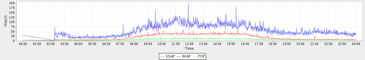 Host zm07.stanford.edu: Mailboxd: Request Rate by Client Protocol