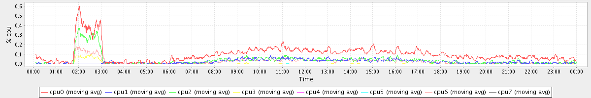 avg(cpu0) = 0.10 avg(cpu1) = 0.02 avg(cpu2) = 0.04 avg(cpu3) = 0.00 avg(cpu4) = 0.00 avg(cpu5) = 0.00 avg(cpu6) = 0.02 avg(cpu7) = 0.00