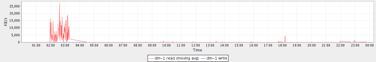 avg(dm-1 read) = 6.00 avg(dm-1 write) = 0.05