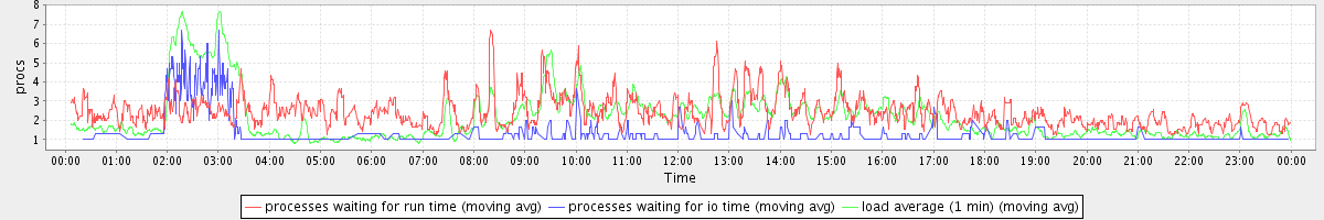 avg(processes waiting for run time) = 1.70 avg(processes waiting for io time) = 0.47 avg(load average (1 min)) = 2.15