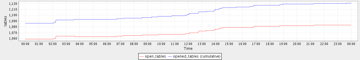 avg(open_tables) = 1071.68 avg(opened_tables (cumulative)) = 1104.26