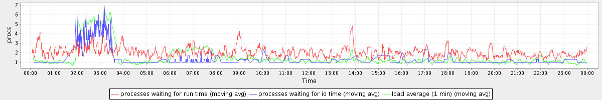 avg(processes waiting for run time) = 1.18 avg(processes waiting for io time) = 0.41 avg(load average (1 min)) = 1.49