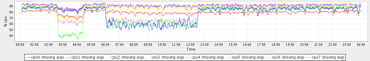 avg(cpu0) = 79.38 avg(cpu1) = 78.59 avg(cpu2) = 75.74 avg(cpu3) = 87.22 avg(cpu4) = 91.35 avg(cpu5) = 90.22 avg(cpu6) = 80.27 avg(cpu7) = 90.48