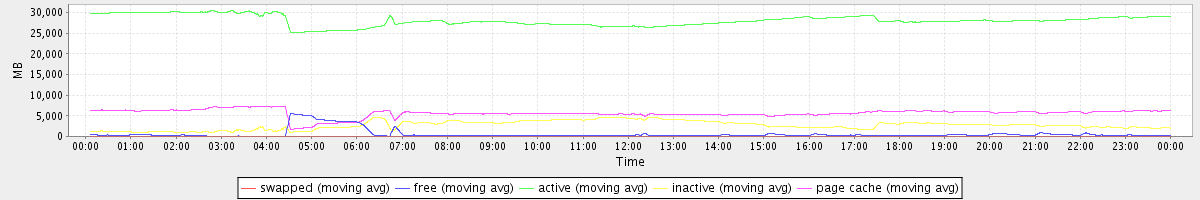 avg(swapped) = 0.25 avg(free) = 570.78 avg(active) = 28097.49 avg(inactive) = 2702.35 avg(page cache) = 5643.97