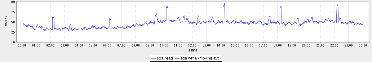 avg(sda read) = 0.00 avg(sda write) = 46.50