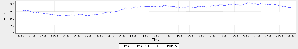 avg(IMAP) = 11.24 avg(IMAP SSL) = 841.95 avg(POP) = 0.00 avg(POP SSL) = 16.90
