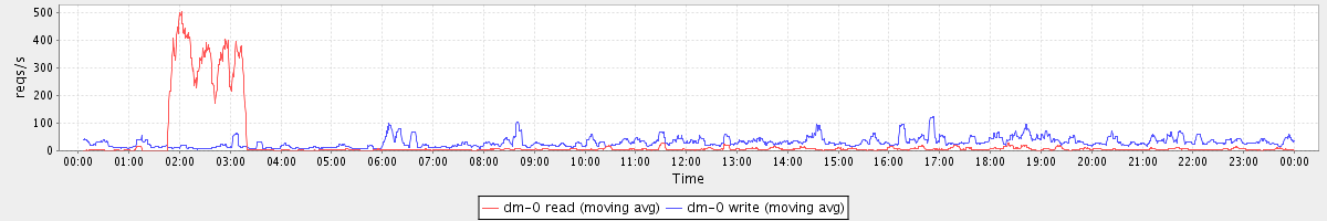 avg(dm-0 read) = 739.36 avg(dm-0 write) = 120.49